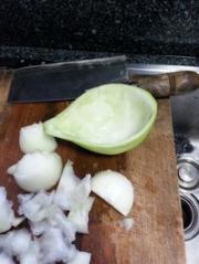接下来,将油蒲瓜切成两半,用勺子挖去中间的籽和白色部分,这部分口感不佳。将瓜肉切成条状或片状,就可以准备烹饪了。